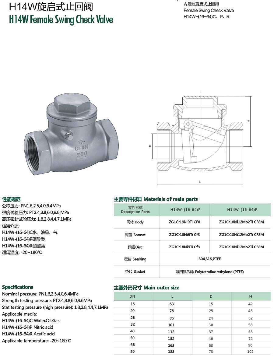 H14W旋启式止回阀