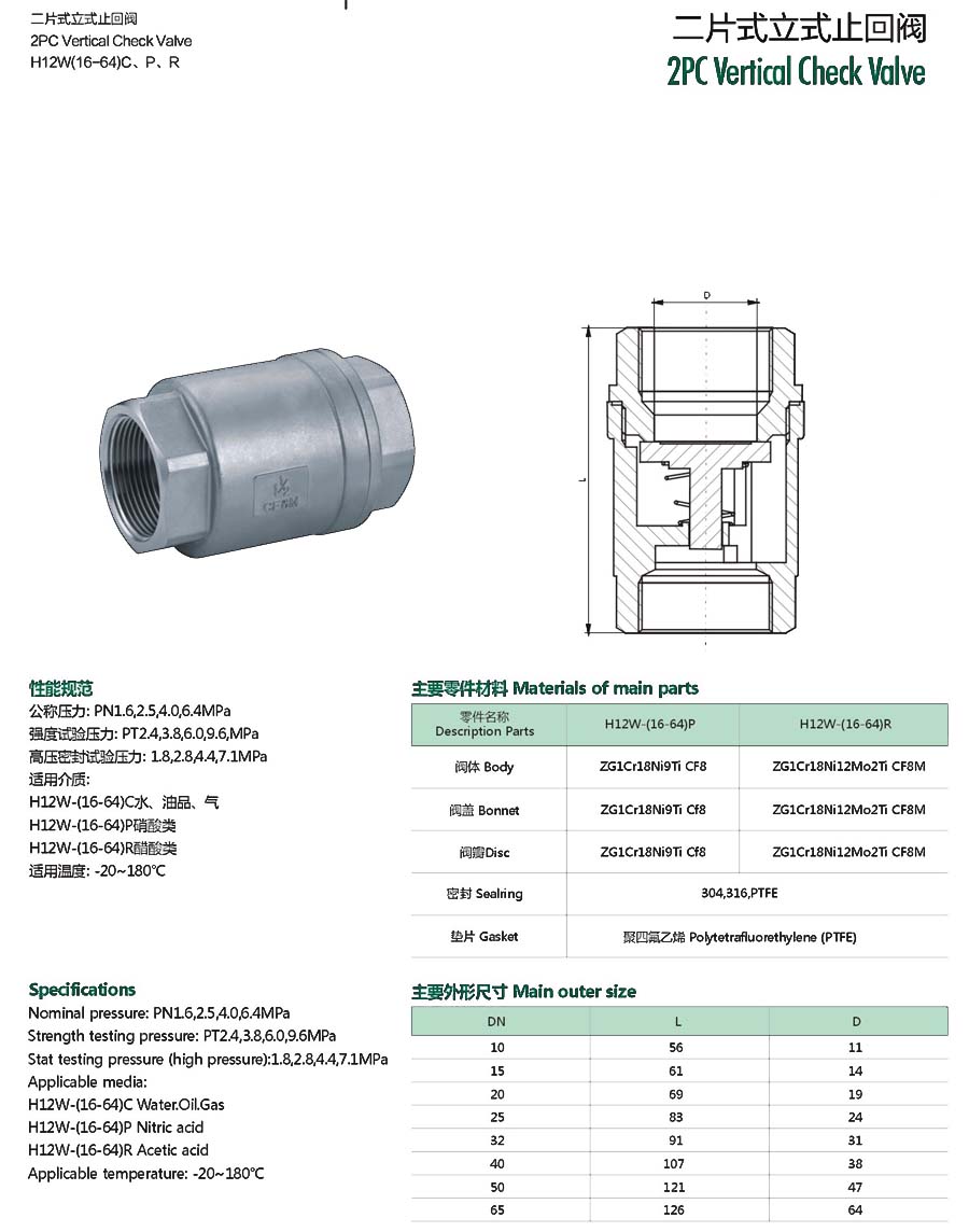 二片式立式止回阀