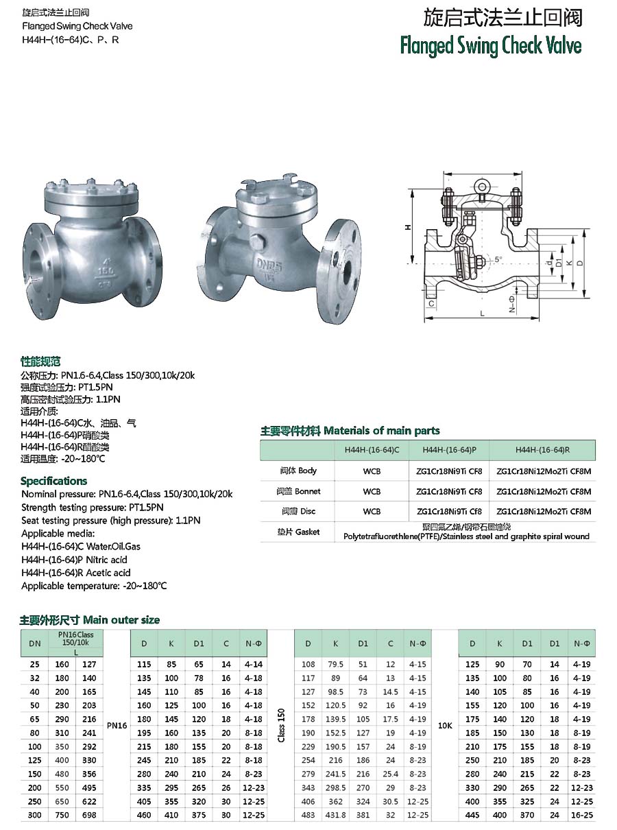 旋启式法兰止回阀H44